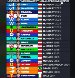 周回遅れになる背景には、マシンのトラブルやドライバーのコンディション、あるいは実力差など様々な要因がありますが、できる限り避けたい状況です。今回は現在のF1ドライバー20名が最後に周回遅れになったデータを見がファンの感想 […]
